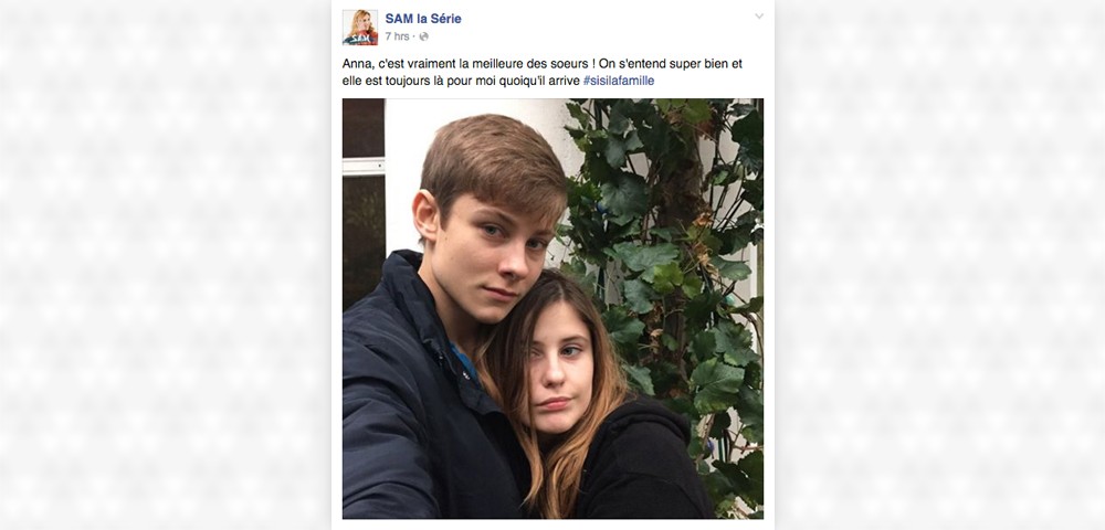 La série s’accompagne en effet d’une animation transmédia qui se déploie sur Facebook par l’intermédiaire d’une page dédiée : SAM la Série. Dès trois semaines avant la diffusion et en marge de celle-ci, Hugo, le fils cadet de Sam, y prend la parole pour raconter son quotidien, revenir sur les frasques de sa mère, dévoiler des informations en avant première, et même faire référence aux rebondissements des épisodes de la série pendant leur diffusion sur TF1 ! Selfies, « snaps » capturés au collège, GIFs, reproductions de conversations de groupes… Les références aux codes du web et des médias sociaux sont omniprésentes dans la trentaine de contenus exclusifs qui seront publiés au cours des six semaines d’animation de la page. Ils donnent corps au personnage de Hugo et permettent à la série de tisser un lien privilégié avec la frange la plus jeune de sa cible.
